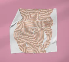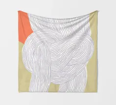 This modern, abstract illustration shows a large knot and twist in light beige and white-cream colours, inspired by Scandinavian boho style. The harmonious colour areas and lines create a childlike, playful pattern that celebrates the beauty of nature.