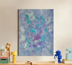 “Pixie Dust” is a dreamy abstract acrylic painting inspired by soft pastels, playful imagination, and the magical world I share daily with my now 7-year-old daughter. This artwork blends vibrant turquoise with gentle purple and airy white, creating a soothing yet uplifting color palette perfect for modern home decor. Ideal for art lovers who appreciate pastel wall art, turquoise abstract prints, and modern calming interiors, this piece adds a subtle sense of magic to any living room, bedroom, nursery, or creative workspace.