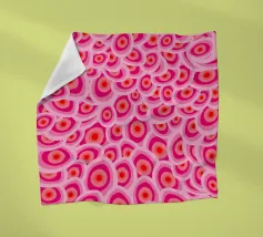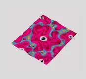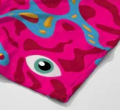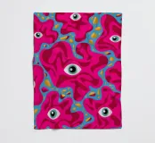 A mesmerizing and psychedelic pattern featuring repeating eyes amidst swirling, organic pink and magenta shapes. This bold and surreal artwork is both hypnotic and intensely energetic.