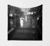 Raindrops cling to a window, creating a blurred view of a city street lit by soft lights in the background. This abstract backdrop captures a serene atmosphere perfect for mobile wallpaper.
