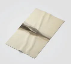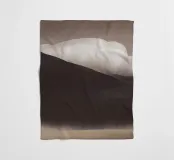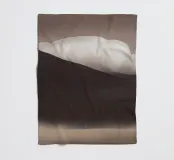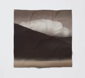 A soft, abstract landscape features a muted color palette with gentle transitions between light and dark shades. A large, white cloud hovers above a dark hill, creating a sense of calm and tranquility.