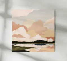 An abstract landscape of soft clouds and gentle light with a calm, balanced atmosphere.