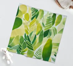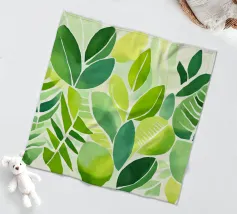 A collection of soft green leaves with delicate textures and shades creates a soothing and harmonious botanical pattern, evoking feelings of peace and serenity.