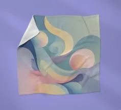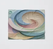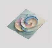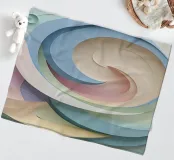 Intricate spiral shapes in soft pastels blend harmoniously, giving the illusion of flowing motion against a pale backdrop. The design captivates with its gentle curves.