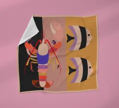 Cheerful illustration featuring two crabs with different face expressions, radiating a spirit of colorful, unique, and interesting life in the sea.