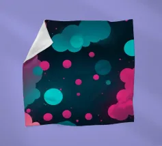 Colorful circles in shades of blue and pink scatter across a dark background, creating a lively abstract design perfect for enhancing desktop aesthetics and artistic expressions.