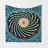 A vibrant, intricate spiral pattern dominates the ceiling, creating a mesmerizing optical illusion with its swirling colors and geometric design. Architectural elements in shades of blue frame the central motif, adding depth and a sense of grandeur.