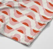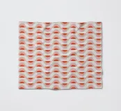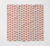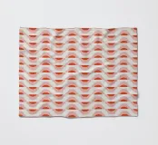 A repetitive wave-like pattern in shades of red and pink forms a geometric design. The pattern is evenly distributed across a light background, creating a visually harmonious effect.