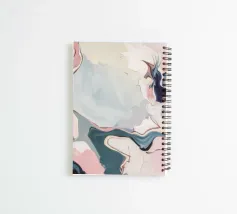 A dynamic abstract artwork with swirling forms in shades of blue, pink, black, and white, resembling a flowing celestial river, cosmic nebula, or a marbled liquid surface with a sense of movement and depth.