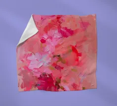 A vibrant abstract composition featuring overlapping geometric shapes in various shades of red and pink. The textured brushstroke details create depth and a dynamic visual appeal, perfect for modern art enthusiasts.