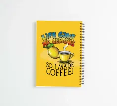 Humorous artwork featuring a vibrant yellow background, a lemon, a steaming coffee cup, and playful text reading "Life Gave Me Lemons So I Made Coffee." Perfect for motivational or lighthearted designs.