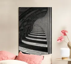 When the city becomes a body. This poster captures the moment when a curve of shadow embraces the architecture. In cinematic black and white, Paris is distorted and becomes a sensation. A unique poster for those who want to suspend time and capture a fragment of mystery.