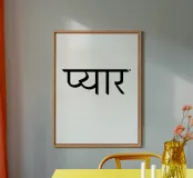 प्यार, love in Hindi. Typography in black and (transparent) white. You can change the background color. Minimalistic typography poster.