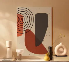 A modern work of art that impresses with its combination of warm red tones, deep black and organic shapes. The harmonious curves, paired with filigree lines and minimalist patterns, give the design an expressive dynamic. Ideal for murals, cushions or mobile phone covers - a real eye-catcher for your home or office.