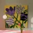 A vibrant, abstract garden scene rendered as a patchwork of dotted and patterned flowers against a dark background. The artwork is a joyful and imaginative interpretation of a blooming garden.