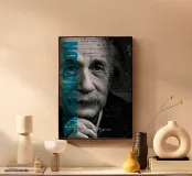 Poster of an original painting in mixed media. Albert Einstein, quote, legend, science, maths, blue, black, fantasy, knowledge, saying, face, portrait, typography, office, children's room, living room, bedroom, kitchen