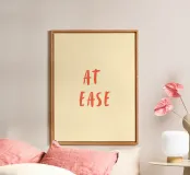 A minimalist typographic art print featuring the phrase “At Ease” in warm, hand-painted lettering. Set against a soft neutral background, this design conveys calm, balance, and a sense of inner peace. Ideal for Scandinavian, modern, or cozy interiors, it brings a relaxed and mindful atmosphere to living rooms, bedrooms, offices, or creative spaces.
