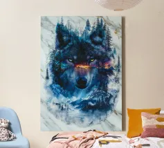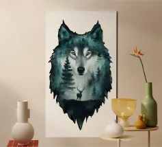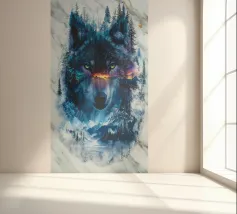 A majestic wolf, a guardian of the northern wilderness, stands sentinel beneath the ethereal glow of the aurora borealis. Its form, intertwined with the rugged landscape, symbolizes the timeless power of nature. This protector of the land watches over its domain with unwavering devotion.