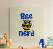 We present a bee wearing glasses and holding a video game controller, accompanied by the playful phrase "Bee Nerd." This design is a clever pun that combines the words "Bee" and "Be," perfect for expressing a love for gaming with a touch of humor. An ideal gift for gaming fans and anyone who proudly embraces nerd culture!