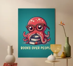 A bespectacled Beholder, surrounded by open books, dives deep into its studies with an air of intellectual curiosity. This whimsical artwork reimagines the iconic fantasy creature as a dedicated scholar, complete with playful nods to "Guide to Rays" and "Petrify for Dummies." A must-have for fantasy enthusiasts, RPG players, and anyone who appreciates a clever and humorous take on classic monsters.