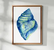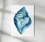 A serene watercolor study of a seashell rendered in layered blues and soft sea-green tones. Loose, transparent washes capture the natural curves and subtle textures of the shell, creating a sense of lightness and calm. Minimal and organic, the composition feels fresh and timeless—perfect for coastal, minimalist, or spa-inspired interiors. This artwork brings a quiet reminder of the shoreline, offering softness, balance, and an easy coastal elegance to any space.