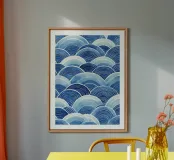 An elegant abstract pattern of blue waves unfolds in this illustration. The flowing curves and subtle gradations of blue create a soothing, rhythmic effect, bringing a touch of harmony and freshness to your space. This timeless design evokes the tranquillity of the sea, ideal for any room where you want to create a calm and serene atmosphere.