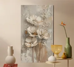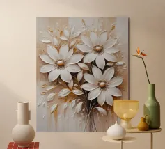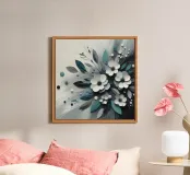 The applied colour creates a lively, almost tangible texture that breathes life into the flowers. Despite the bold brushstrokes, the painting radiates a calm structure that places the viewer in a quiet dialogue with nature. The colours blue and white harmonise perfectly and convey a feeling of peace and innocence. This work of art is an ode to the quiet yet overwhelming beauty of nature, touching in its simplicity and depth.