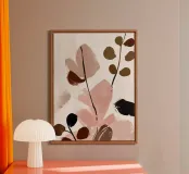 A graceful abstract composition of soft blush tones, earthy browns, and deep blacks, evoking the delicate forms of leaves and petals. This modern botanical study blends painterly gestures with a refined, contemporary palette — perfect for minimalist and organic-inspired interiors.