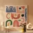 A collection of abstract, earthy toned shapes, including arches, lines, and curves, arranged in a balanced, bohemian style composition.