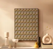 An intricate pattern featuring geometric shapes in shades of brown, gray, and beige creates a tessellation effect. The repeating design forms a mesmerizing visual rhythm across the image.