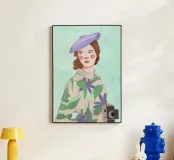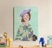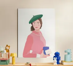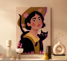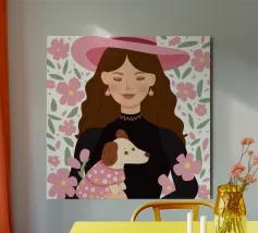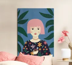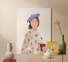 This is one of my first portrait and I like it a lot. The joyful pattern of her dress and the cute pattern on the background will bring color to your wall!