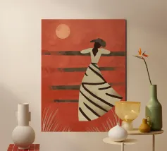 "Chasing Daylight" transports you to a state of calm and deep reflection. This design, with its abstract silhouettes and soft hues, embodies meditation and tranquility. Inspired by the moments of quiet found in nature, it’s perfect for a living space that serves as a haven of peace. The clean forms and soothing tones are ideal for bringing serenity to your interior, whether in a yoga room or bedroom. With its minimalist allure, this artwork is both contemporary and timeless.