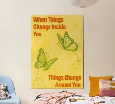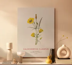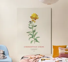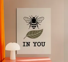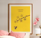 This work of art from Artezza captures the delicate moment between a bee and blossoming cherry branches. The minimalist design in warm yellow and contrasting purple combines nature poetry with modern aesthetics. The fine texture, clear composition and elegant typography make "Chasing Spring" an expressive wall decoration - ideal for calm, stylish rooms.