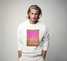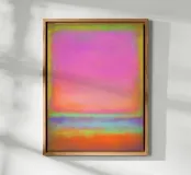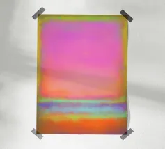 This abstract mural combines the emotional depth of Mark Rothko with powerful blocks of colour in pink, orange and blue that flow into each other in soft gradients. The textured painting style and interplay of bold colour fields lend the room a lively, inspiring atmosphere full of modern dynamism.