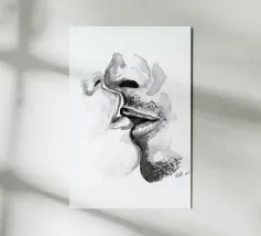 Larissa van der Laan is a scientist and artist who creates work inspired by her travels, which informs the methods she uses and the images she chooses to create. She draws on her background as a glaciologist and all-round adventurer to depict landscapes, and her skills as a painter and illustrator to use geometry and watercolours as a method of creating sensuality and intimacy. Her figurative work, which often includes human bodies at close quarters, uses colour and shading to emphasise the physicality of her subjects. Larissa van der Laan lives and works in the Netherlands.