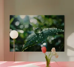 A drop on green blossoms