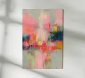 This abstract artwork depicts flowing areas of colour in pastel pink, yellow, blue, green and pink. The soft brushstrokes and harmonious pop art colour composition create a vibrant, lively atmosphere. The motif appears modern, light and emotional, inviting free interpretation.