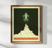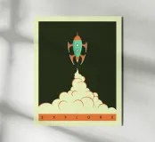 Minimalist rocket ship pop art.