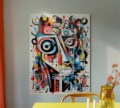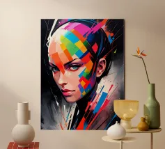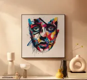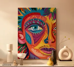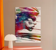 Vivid abstract illustration of a human face rendered with bold brushstrokes and vibrant splashes of red, blue, yellow, and black. Expressive details evoke emotion and creativity, blending modern art and realism.