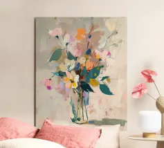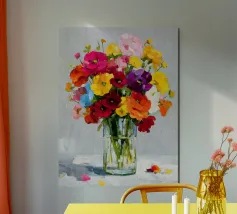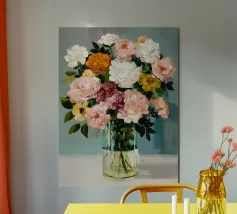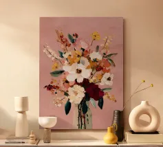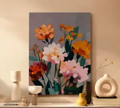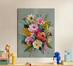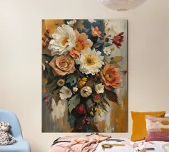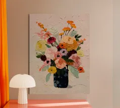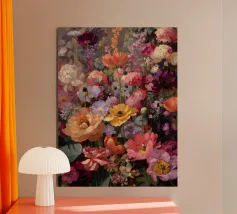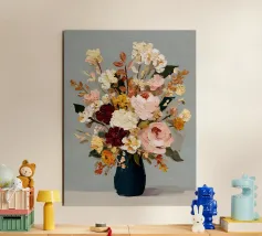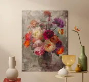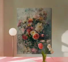 This digital oil painting captures a bouquet in vivid bloom, partially veiled by the ghostly overlay of its faded future. A poetic visual metaphor for time’s passage, this artwork merges beauty with a subtle sense of melancholy, offering a thought-provoking centerpiece for any space.