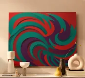 A bold abstract pattern with a touch of dynamic energy that symbolises movement and fluidity. Bright colours to evoke themes such as water, life and movement. An innovative fusion of tradition and modernity for contemporary, minimalist interiors. A unique visual language that transcends cultural boundaries.