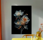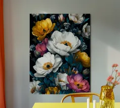 AI structure photo of a bouquet of flowers with a black background. The photo is great as a poster or canvas painting with flowers in your home