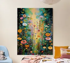 flowers patterns nature garden plants dots bold colors floral organic shapes vibrant foliage abstract forms natural scene botanical bright multicolored landscape textured lush dense