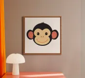 Playful artwork featuring a funny monkey face, perfect for printing on products like kids' apparel, toys, mugs, and more. Add a touch of humor and charm to children's items with this cheerful design!
