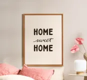 This modern and minimalist hand lettering typography design with the lovely message "Home Sweet Home" gives every room a warm and inviting atmosphere. With elegant lines and stylish typography, it is an aesthetic eye-catcher on any wall. Whether in the living room, hallway or as a tasteful gift for design lovers - this work of art blends seamlessly into a variety of interior styles, from contemporary to classic. Perfect for anyone who wants to enhance their home with tasteful accents. | © Kathrin Woo | www.kathrinwoo.com