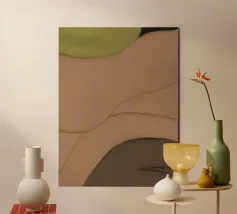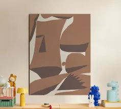 A harmonious study in softened geometry and muted balance. Organic shapes float against a warm clay-toned backdrop, intersecting gently like thoughts paused in motion. With its earthy palette—terracotta, ash beige, and sage—it evokes the quiet elegance of Nordic home décor: calm, natural, and intentionally unrefined. Perfectly suited to interiors that embrace texture, tactility, and timeless simplicity.