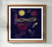 Imaginary planets, stars and the moon shining their way in the deep dark sky. Alien ships and space creatures travelling through galaxies and black holes. There is place for everyone in our big and welcoming universe.