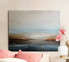 This abstract seascape captures the movement, depth and atmosphere of the ocean in a modern, timeless form. Flowing structures and nuanced colours are reminiscent of water, wind and light in transition and convey tranquillity, vastness, longing and freedom. The minimalist seascape creates a meditative mood and blends harmoniously into modern living spaces, Scandinavian interiors or minimalist furnishings. Ideal for anyone who loves abstract art, maritime motifs and timeless wall art.