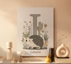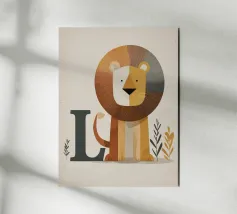 Motif for children with initial and animal. Customisable illustration for the children's room. Ideal as a gift.