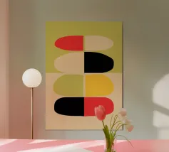 "Three colours in shapes. Two intentions. One point of balance."